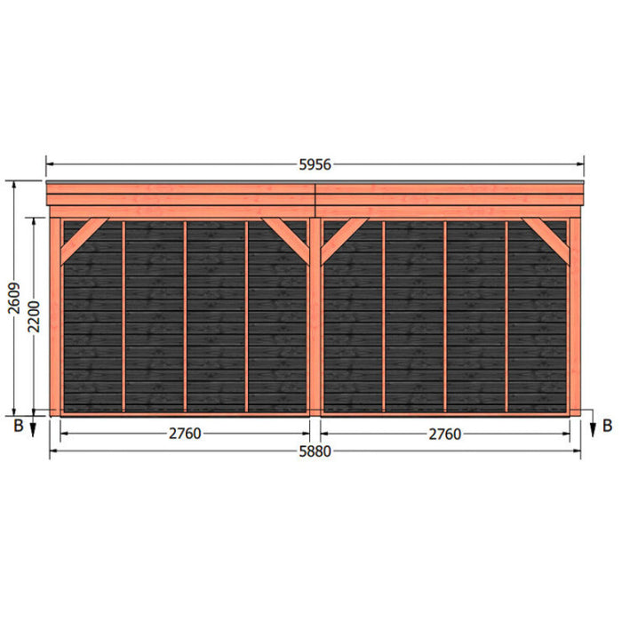 Bouwpakket Padova Zwart - Douglas Overkapping - 595x330cm