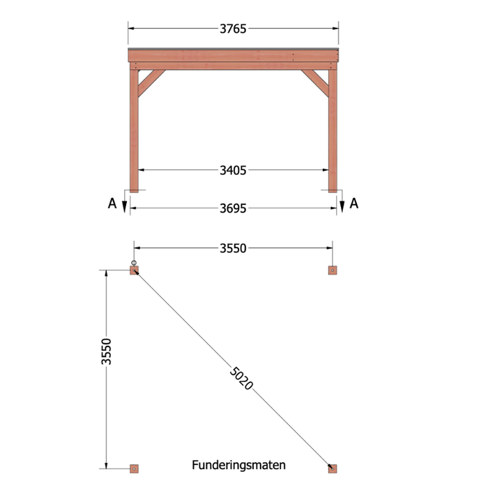 - Diepte dakmaat: 396,5cm (27cm overstek)