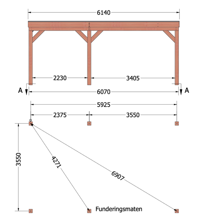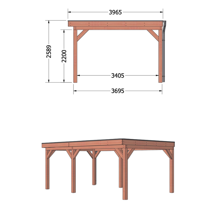 - Diepte dakmaat: 396,5cm (27cm overstek)