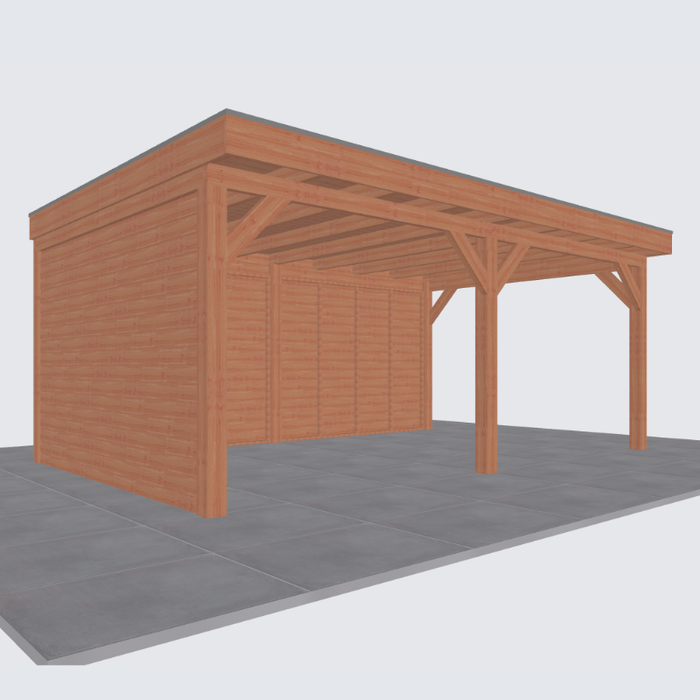 Let op: de tweede foto is een render ter inspiratie hoe de overkapping eruit komt te zien. Er kunnen kleine verschillen in de details zitten. De exacte specificaties van de overkapping vind je hieronder:
