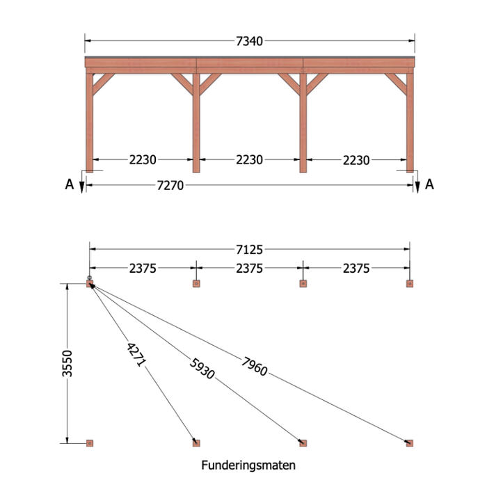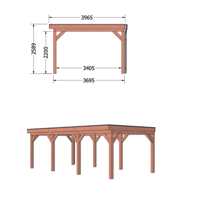 - Diepte dakmaat: 396,5cm (27cm overstek)