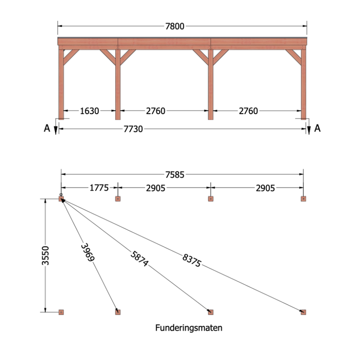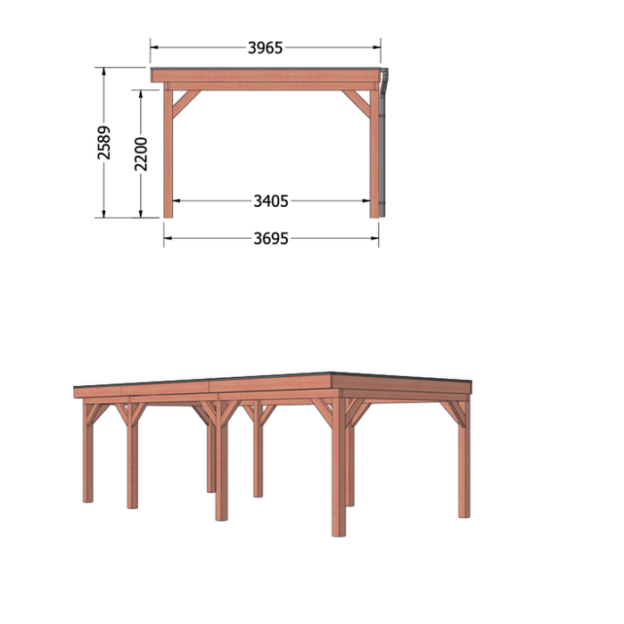 - Diepte dakmaat: 396,5cm (27cm overstek)