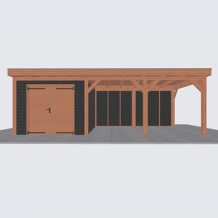 Wanden van zweeds rabat: De meegeleverde wanden zijn gemaakt van prachtig 2x zwart gespoten fijnbezaagd douglas zweeds rabat.