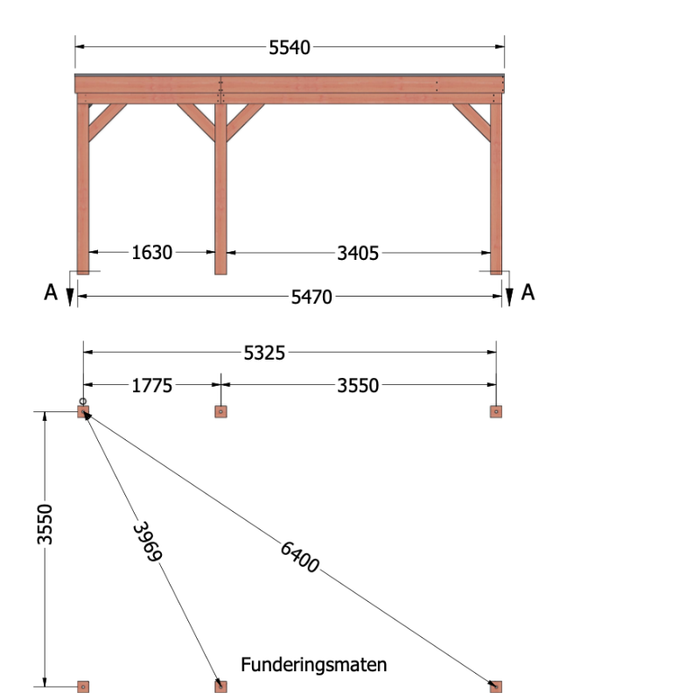 - Diepte dakmaat: 396,5cm (27cm overstek)