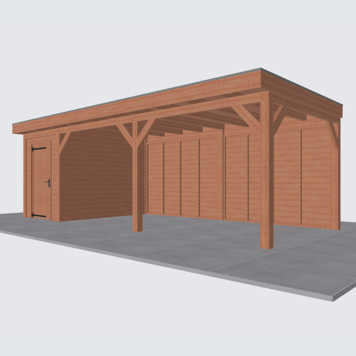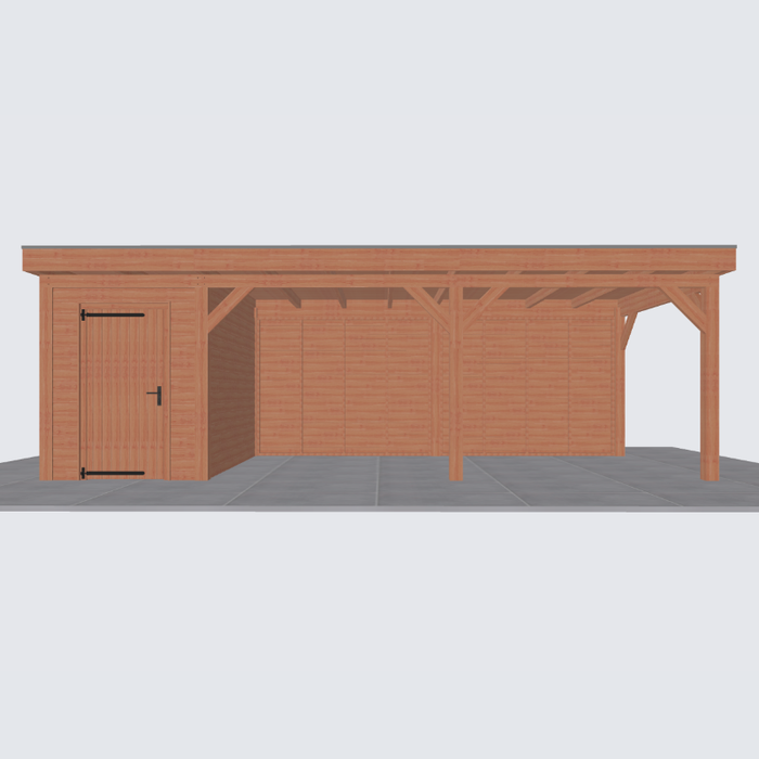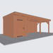 Let op: de tweede foto is een render ter inspiratie hoe de overkapping eruit komt te zien. Er kunnen kleine verschillen in de details zitten. De exacte specificaties van de overkapping vind je hieronder: