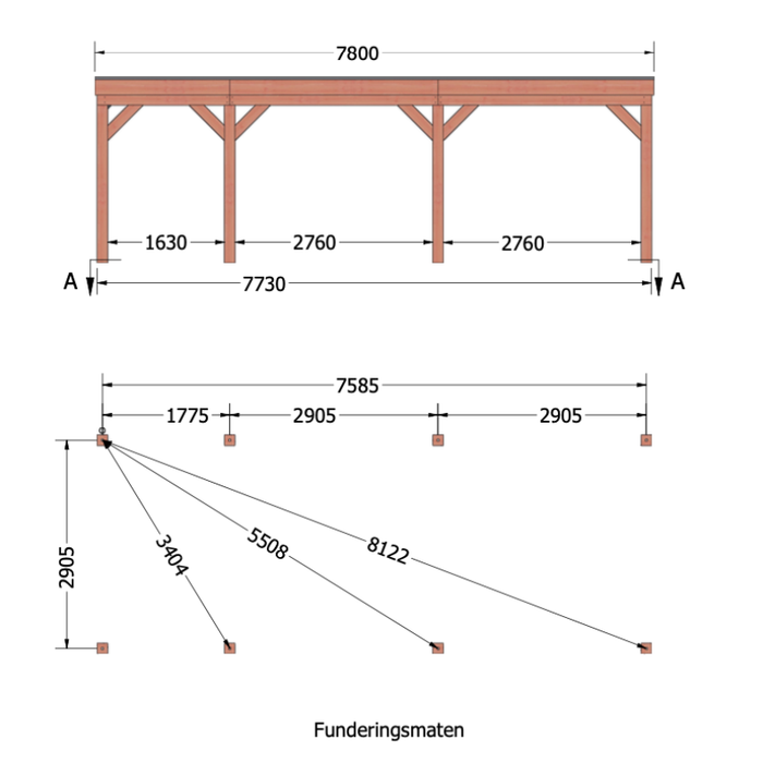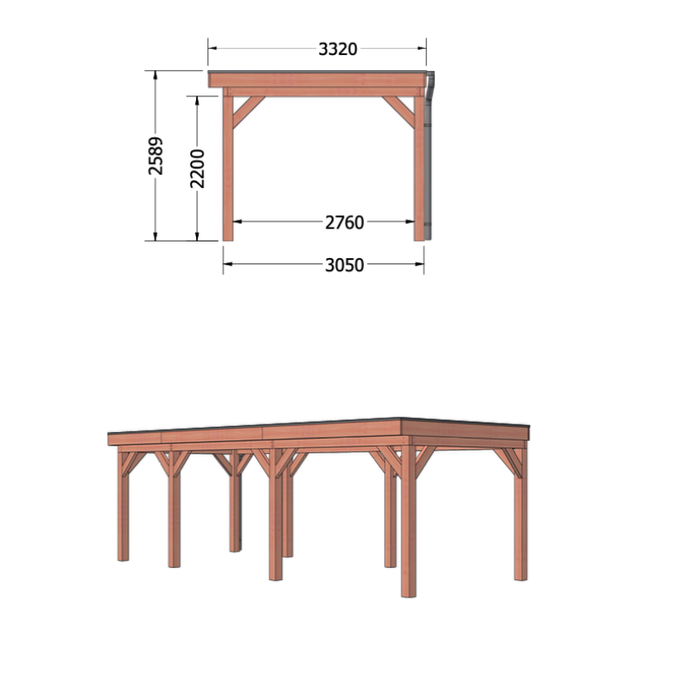 - Diepte dakmaat: 332cm (27cm overstek)