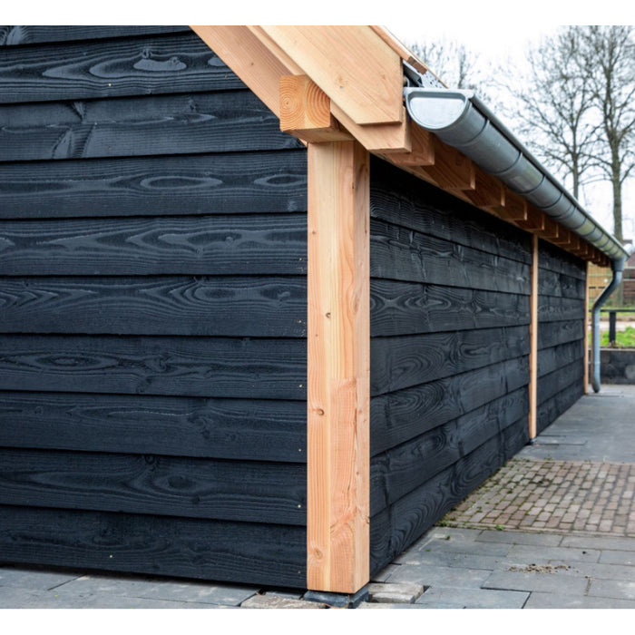 Zwart vuren zweeds rabat wordt veel gebruikt als gevelbekleding, schuttinghout of wanden in een douglas overkapping. De voorkant van het zweeds rabat is fijnbezaagd wat zorgt voor een karakteristieke en robuuste uitstraling. De achterzijde is geschaafd met 2 spanningsgroeven zodat de rabatdelen zo min mogelijk krom trekt. 2x zwart gespoten vurenhout is mooi diep zwart van kleur en dus klaar om gemonteerd te worden. Zweeds rabat van vurenhout kan je het beste monteren met zwarte potdekselschroeven.